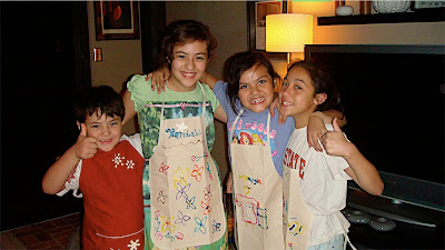 For Christmas, Ed & I promised them a cooking lesson, and we bought them aprons that they could decorate themselves to wear to the class. The schedule has gotten pretty busy for them with softball now, so we decided to just give them an introductory lesson ourselves, and once softball ends, we will take them for their real class. The plan tonight was to make homemade pizzas.