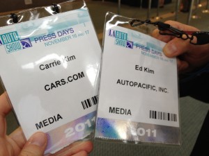 If you would have told us a year ago that Carrie would be at the L.A. Auto Show with Press Credentials, writing for cars.com, neither of us would have believed it. But it’s true – this year we both attended for media days before the show opens up to the public, and it was pretty thrilling for both of us to be there – together!