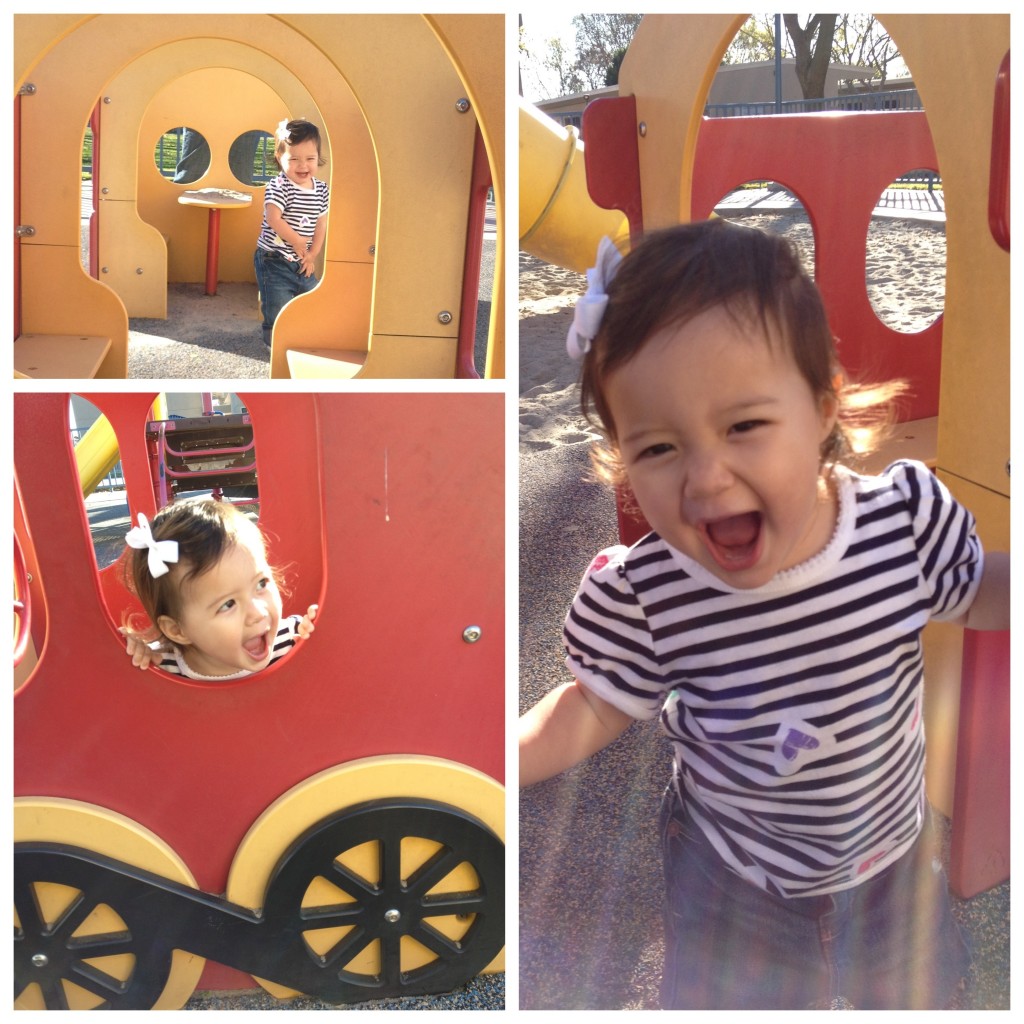 Playground Love You’ll probably be seeing many shots I our girl at the park. These days, we visit the playground almost daily. We’ve got a very busy girl on our hands, and she’s not happy unless she can blow off a little steam! Pretty cute steam, isn’t it?
