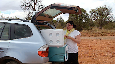 We’d thought ahead and packed lunches for the trip, so by the time we were hungry and many miles away from any services, we had lunch waiting for us. Roadside picnic!