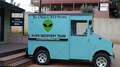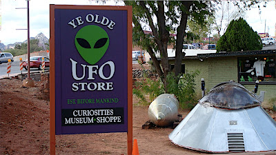 Upon returning to civilization, we stopped into the local UFO store, filled with all kinds of alien kitsch, including countless pieces of “evidence” proving their existence. We perused the store to the looped recording of the X-Files theme!