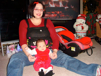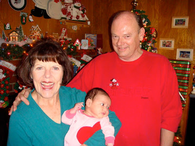 That afternoon, we headed over to Grandma + Papaw’s for more food and fun. At my baby shower, my parents gave me a few of my baby dresses that they had been saving over the years for my own daughter to wear one day. One of the dresses was a red velvet one that I had worn on my very 1st Christmas when I was 10 months old. (I need to scan a picture!). Here is Ruby wearing that very same dress 35 years later: