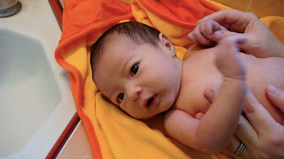 Ruby got a bath tonight. That’s one milestone down for us rookie parents!